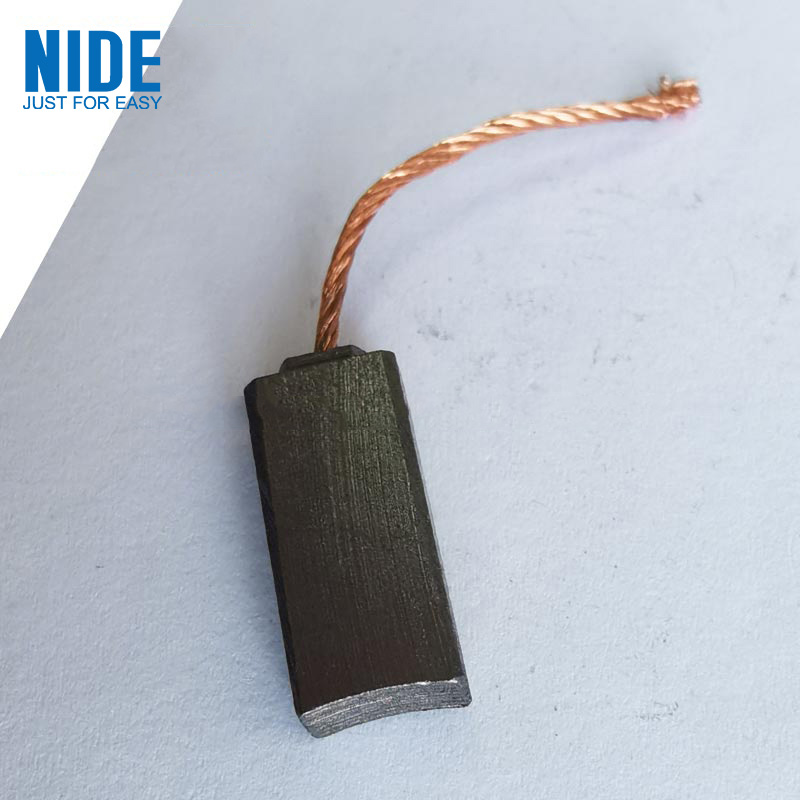Ці вугільні щітки автомобільного генератора виготовляються шляхом зв’язування штучного або натурального графіту смолою або смолою. Часто ці брушники використовуються в контактних кільцях і комутаторах.